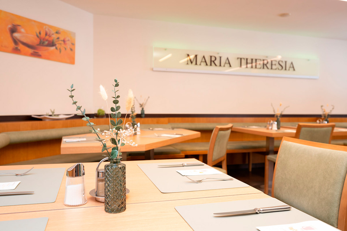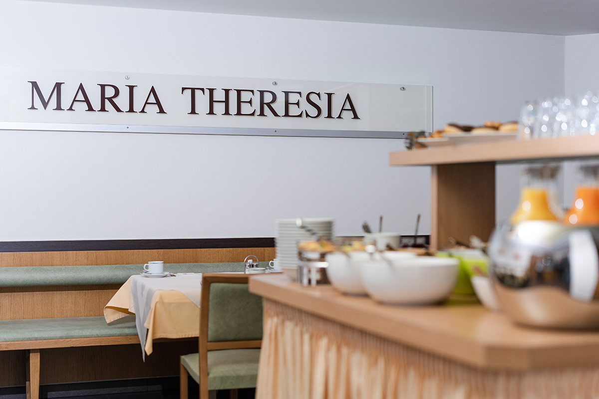Für einen guten Start in jeden neuen Urlaubstag ist im Hotel Garni Maria Theresia gesorgt. Hausgäste werden mit einem reichhaltigen Frühstücksbuffet verwöhnt. Süße, pikante und vitale Frühstücksklassiker in erstklassiger Qualität und nach Möglichkeit regional. Natürlich von der Gastgeberfamilie persönlich zubereitet.
